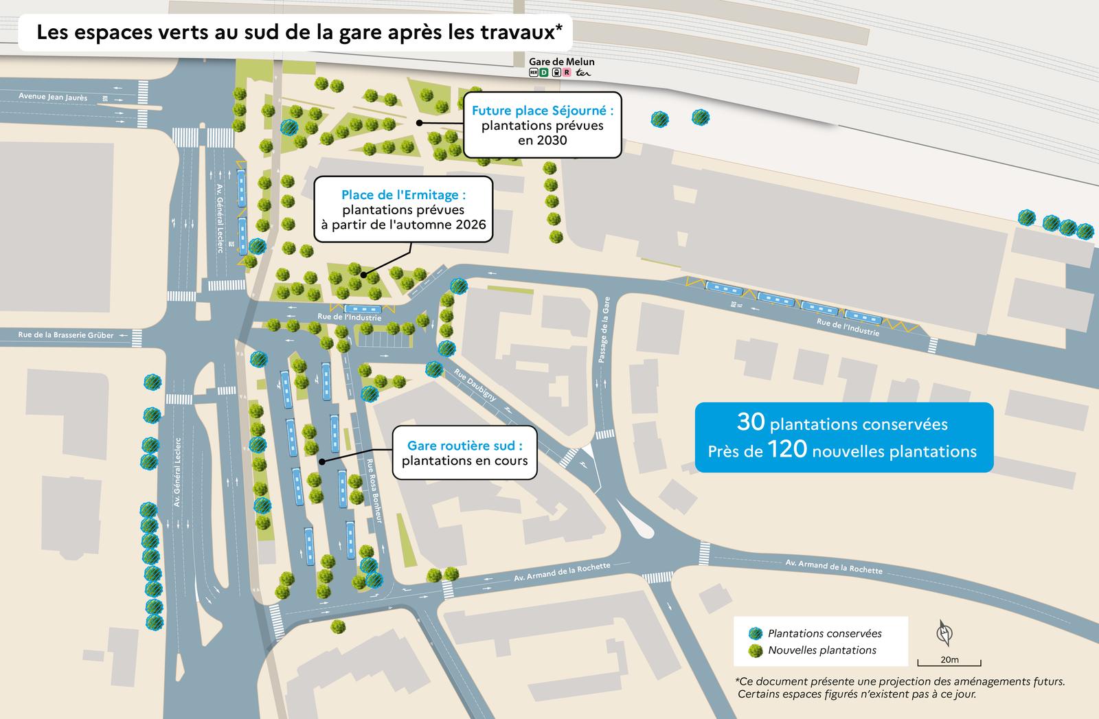 Au total, plus de 120 nouvelles plantations seront réalisées sur le secteur sud de la gare, tandis qu’une trentaine seront conservées dans leur état initial.