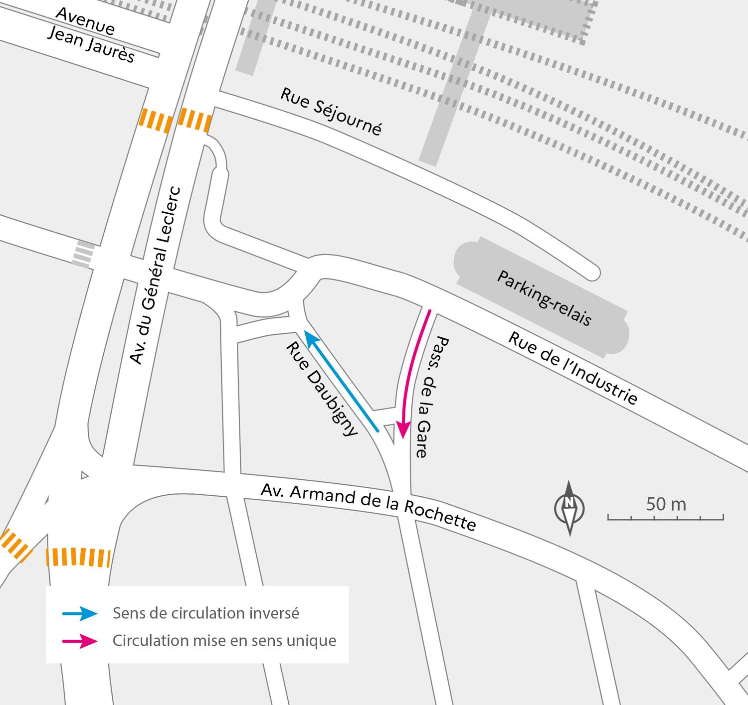 À partir du 19 février, la circulation routière évolue dans le secteur sud de la gare :