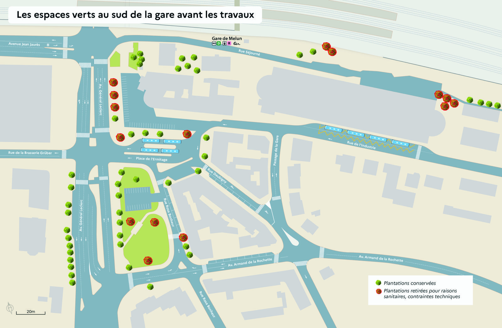 Au total, plus de 120 nouvelles plantations seront réalisées sur le secteur sud de la gare, tandis qu’une trentaine seront conservées dans leur état initial.