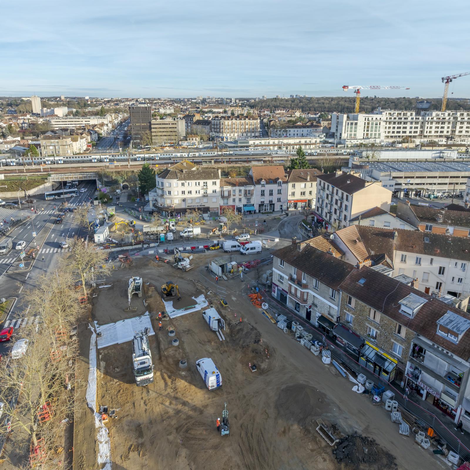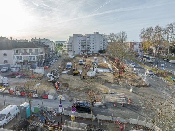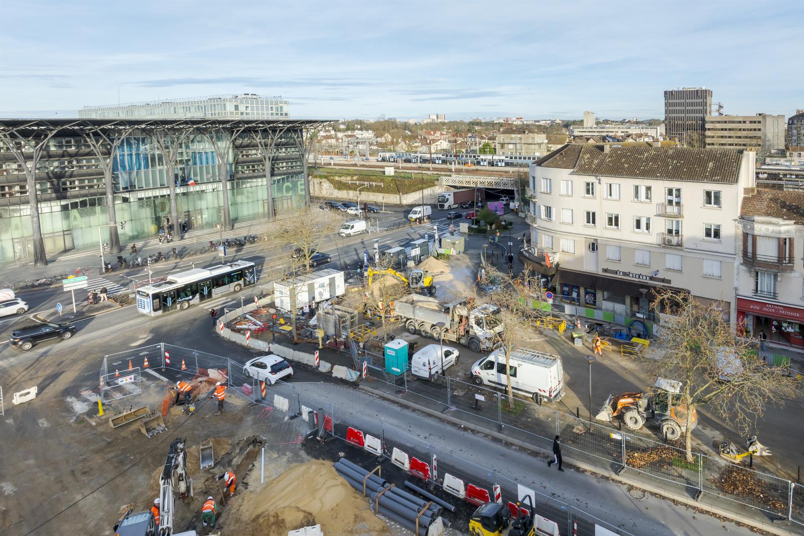 Après les travaux de gros œuvre, le chantier se poursuit avec le démarrage des aménagements de finitions de la future gare routière sud et du parvis sud.