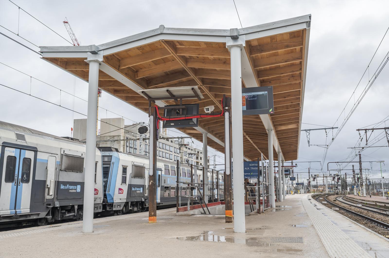 Les abris ont été provisoirement raccourcis pour permettre la réalisation des travaux du passage souterrain. Ils retrouveront leur longueur définitive en 2028, une fois les travaux terminés et seront rallongés pour couvrir deux à trois fois leur surface actuelle.