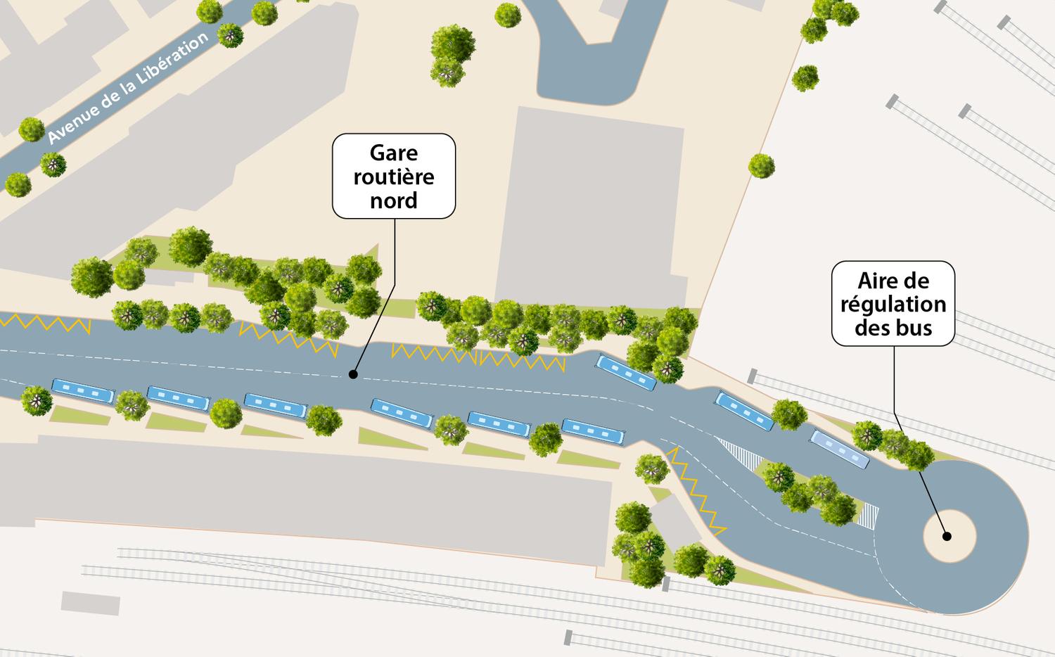 Parmi les aménagements prévus au nord de la gare de Melun figure la création d’une aire de régulation et de retournement des bus.