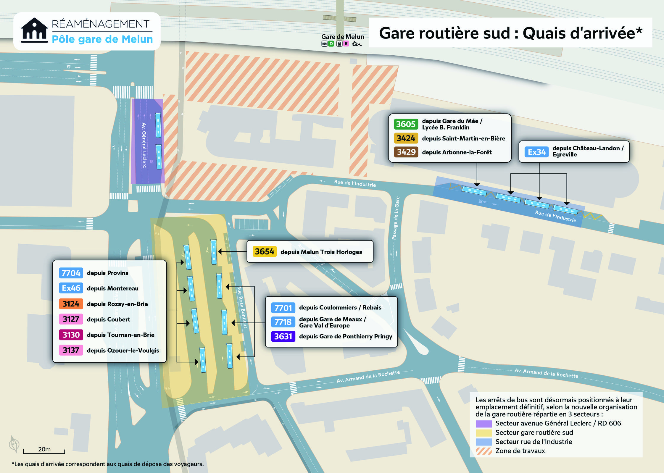 Les arrêts « Gare de Melun » des lignes 3607 (dir. Peguy) et 3658 (dir. Saint Germain-Laxis) sont déplacés avenue Gallieni ;